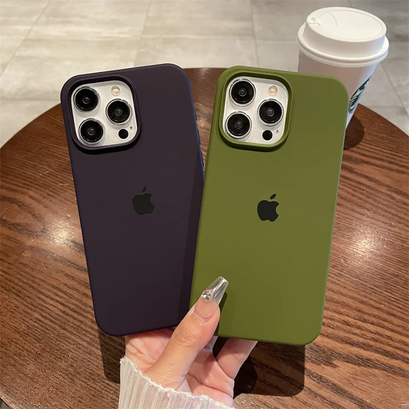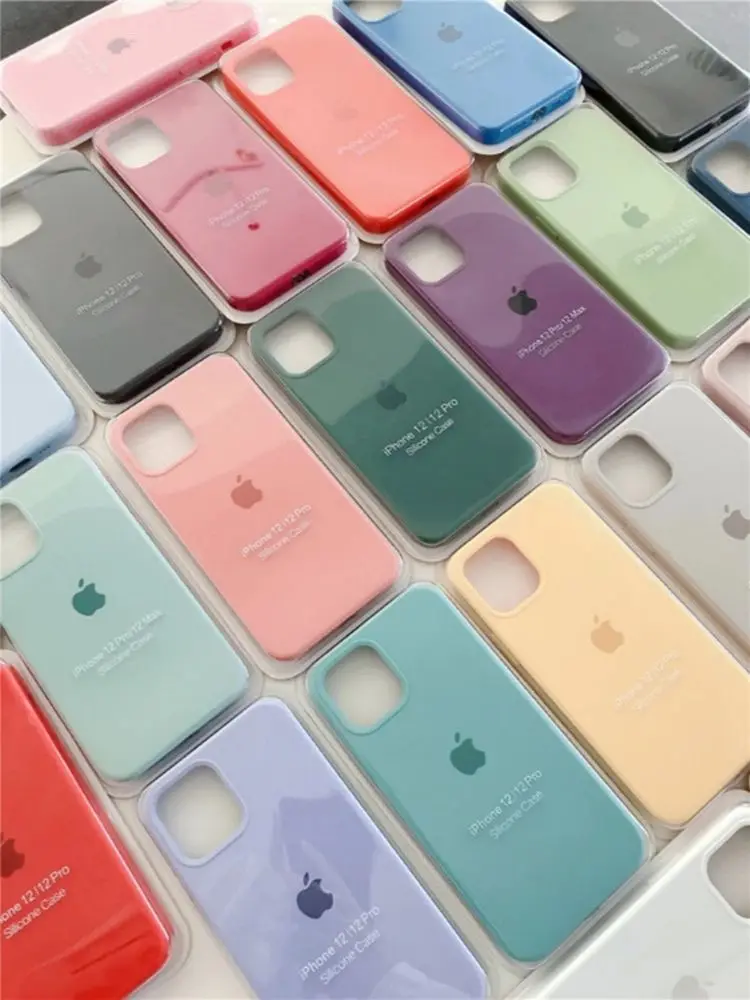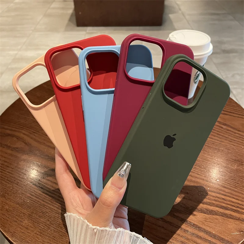 Original Official Apple Silicone Cases For iPhone 13 14 15 12 16 Pro Max Full Protector Full Apple Logo Phone Cover With Box